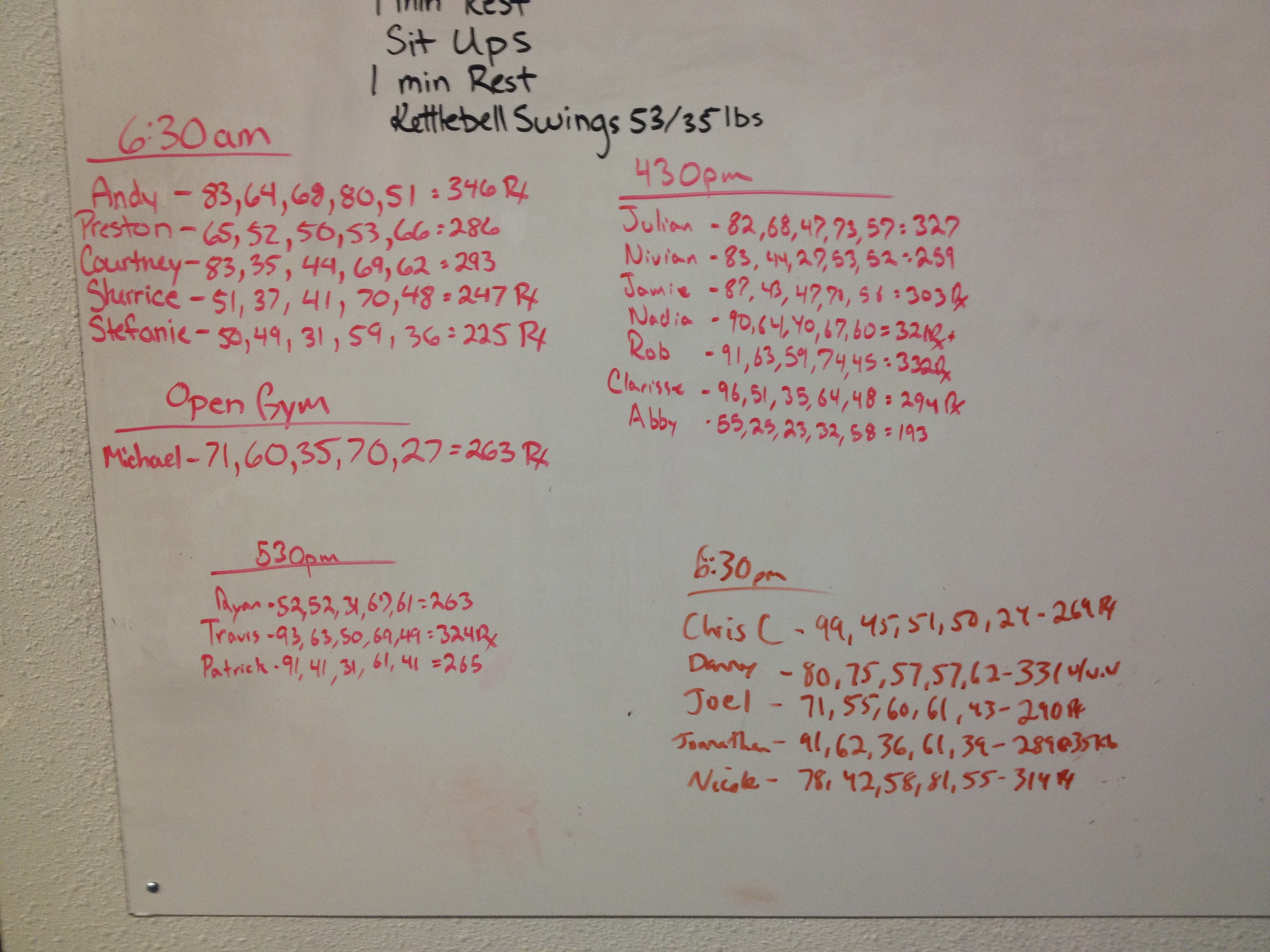 * Score is total reps obtained