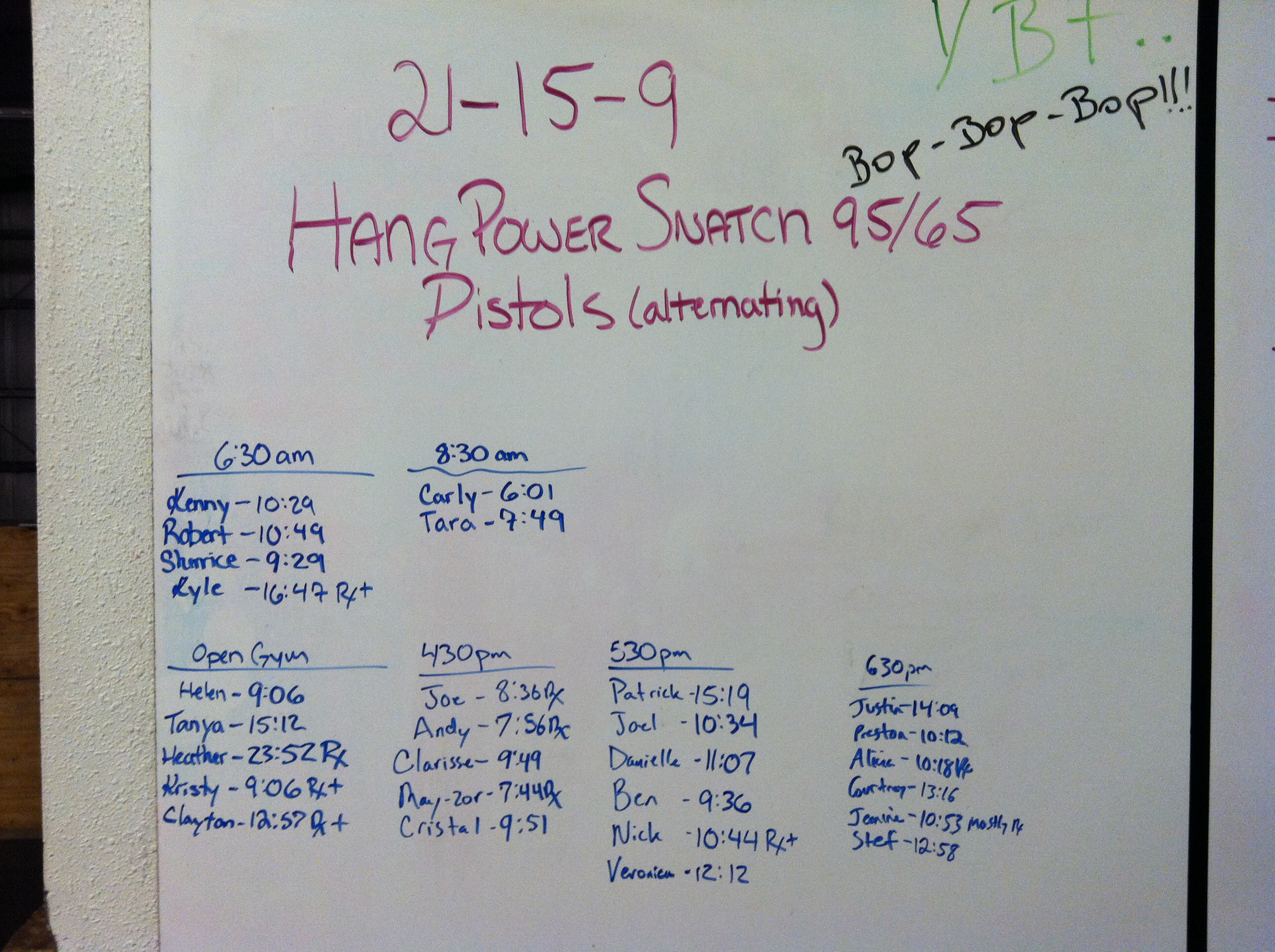 May 7, 2014 WOD Posted onMay 6, 2014May 7, 2014AuthorClaytonLeave a comment For Time: 21-15-9 Hang Power Snatch 95/65lbs Pistols (alternating)