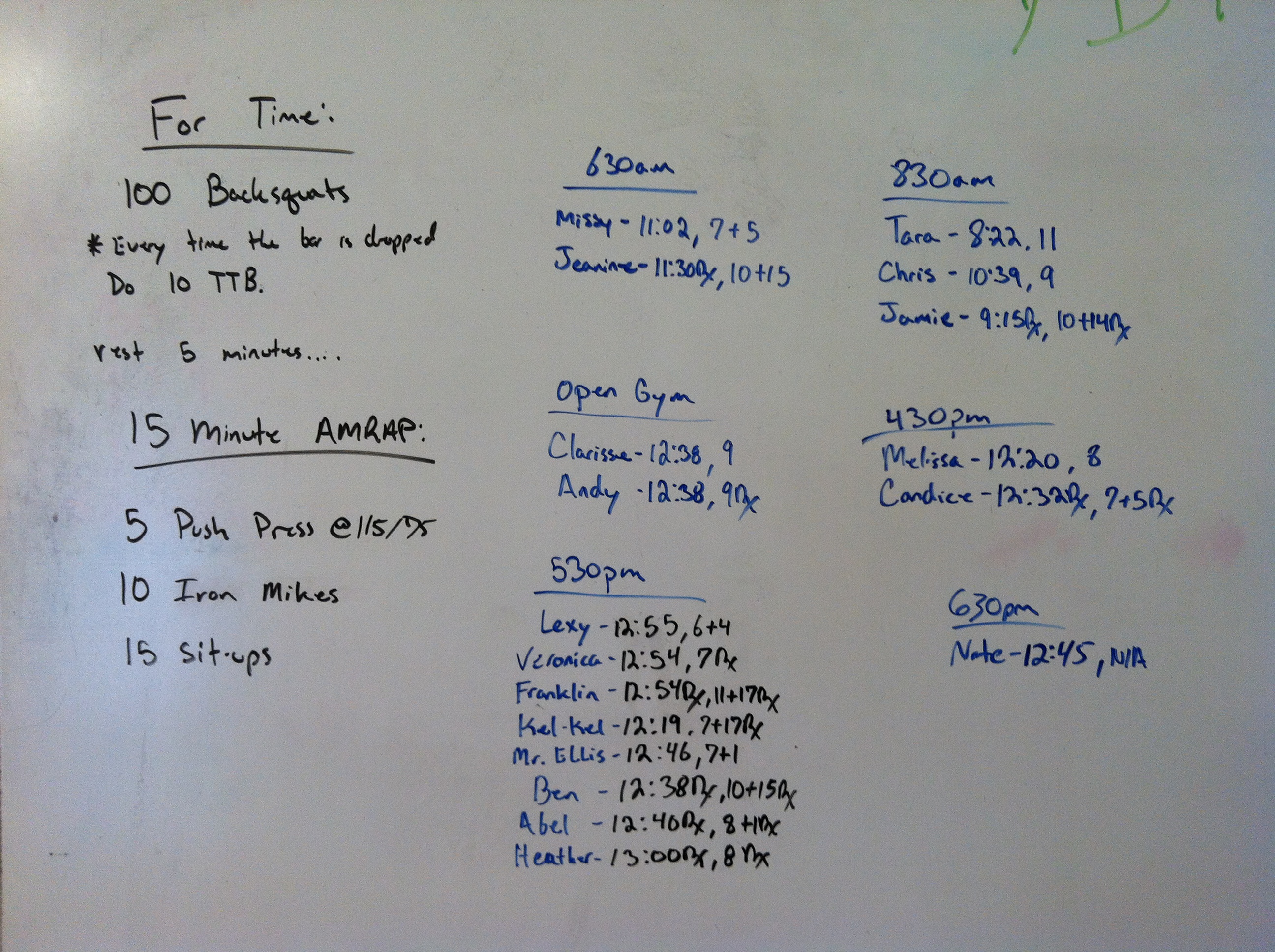 *Every time the bar is dropped, perform 10 Toes to Bar