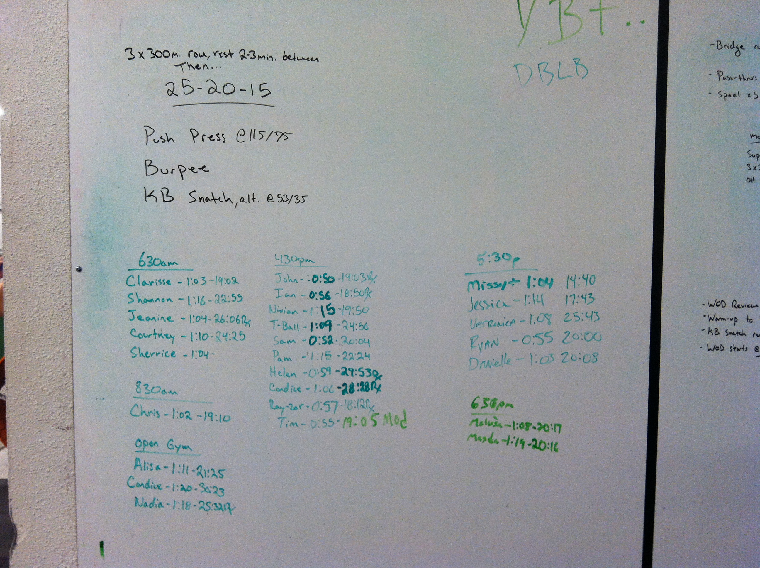August 25, 2014 WOD Posted onAugust 24, 2014August 25, 2014AuthorClaytonLeave a comment For Time: 25-20-15 Push press @115/75 Burpee KB snatch, alt. @53/35