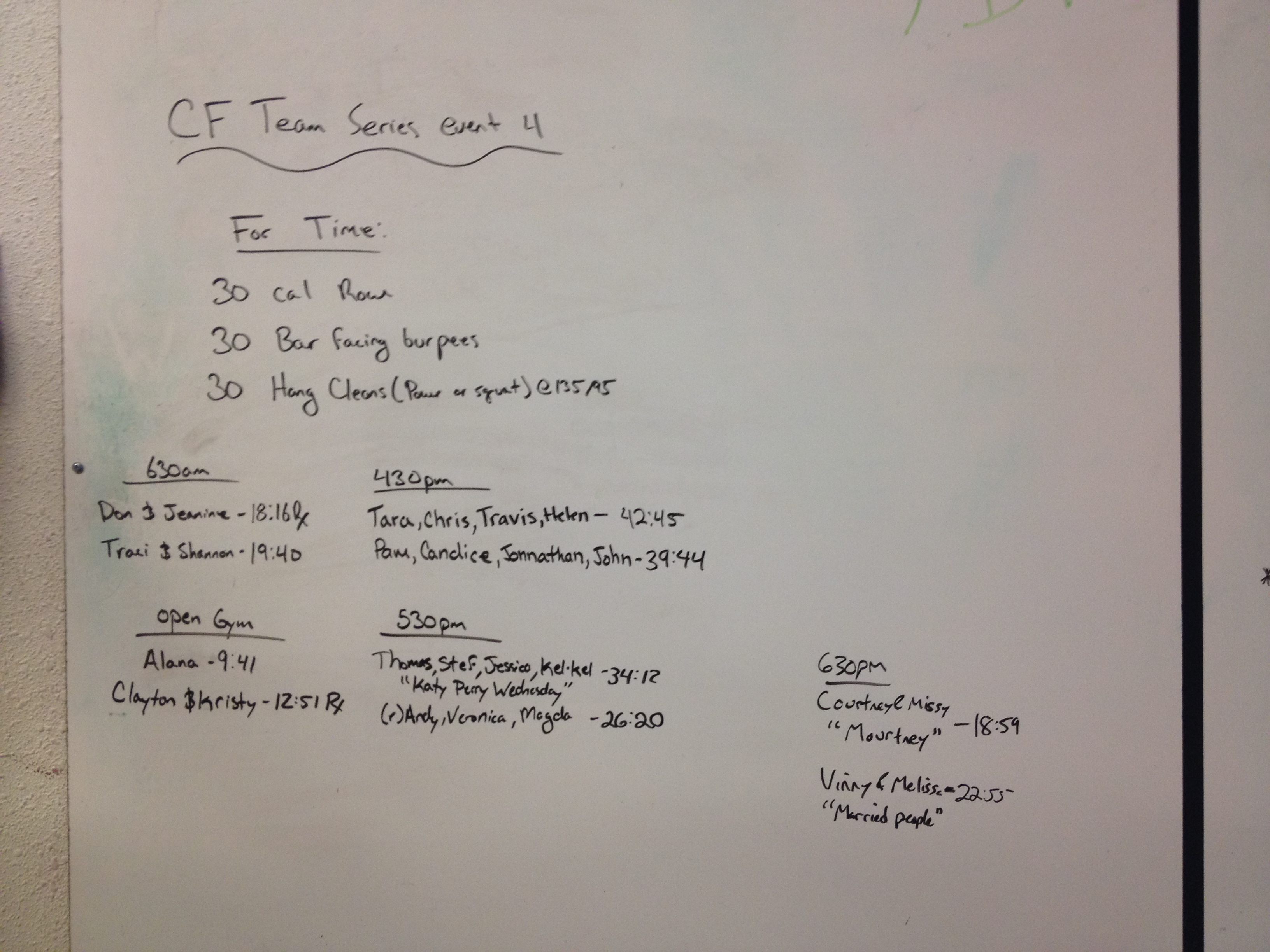 **This WOD can be performed as an individual or as a team up to 4 members. With 1 member moving at a time, and the next member not allowed to begin rowing until the team member finishes their hang cleans and slaps hands with the next team member. Scored as total time for the team to complete.