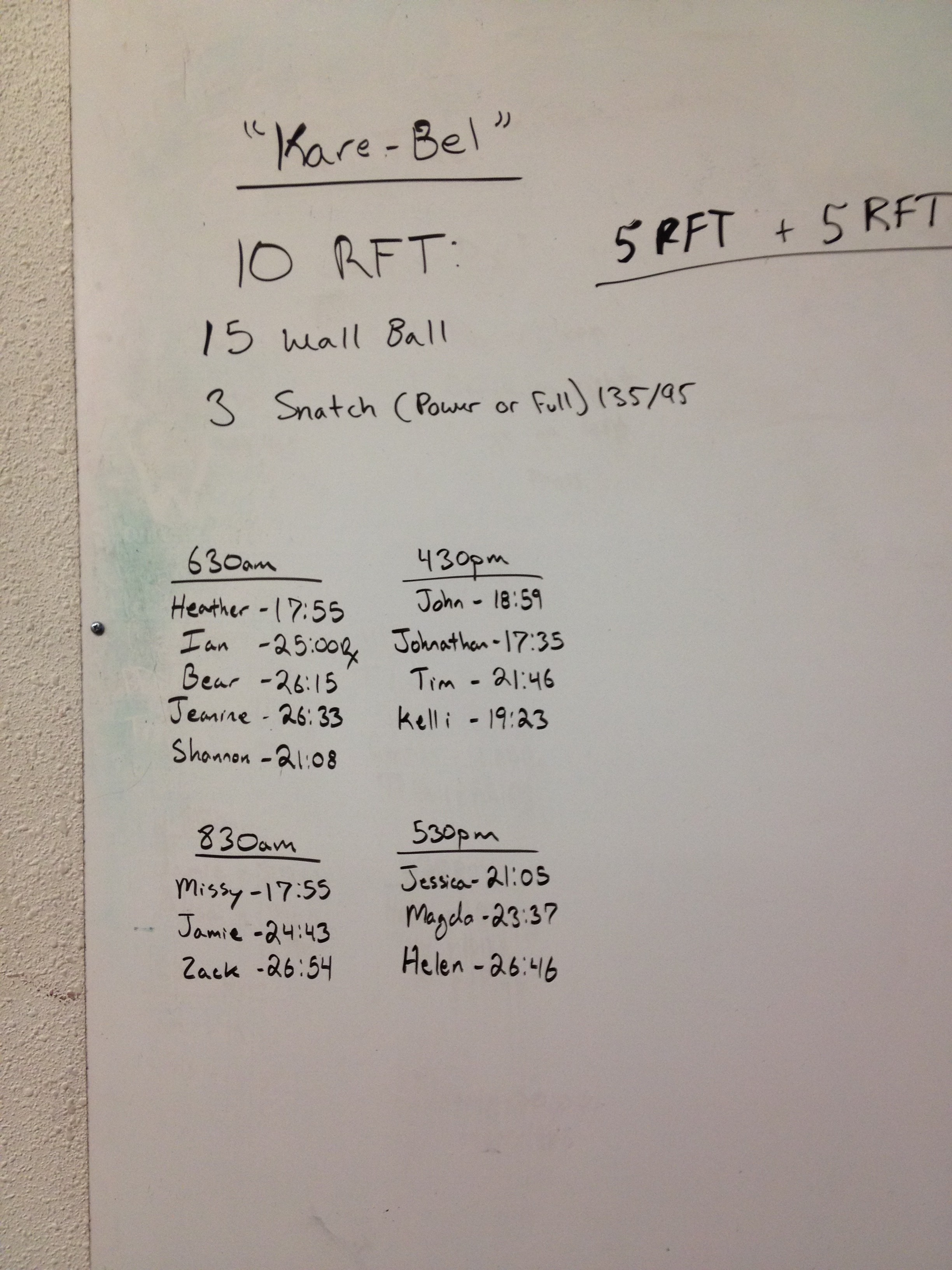September 5, 2014 WOD Posted onSeptember 4, 2014September 5, 2014AuthorClaytonLeave a comment “Kara-bel” 10 Rounds for Time: 15 Wall ball @20/14lb. to 10′ 3 Snatch (Power or full) @135/95