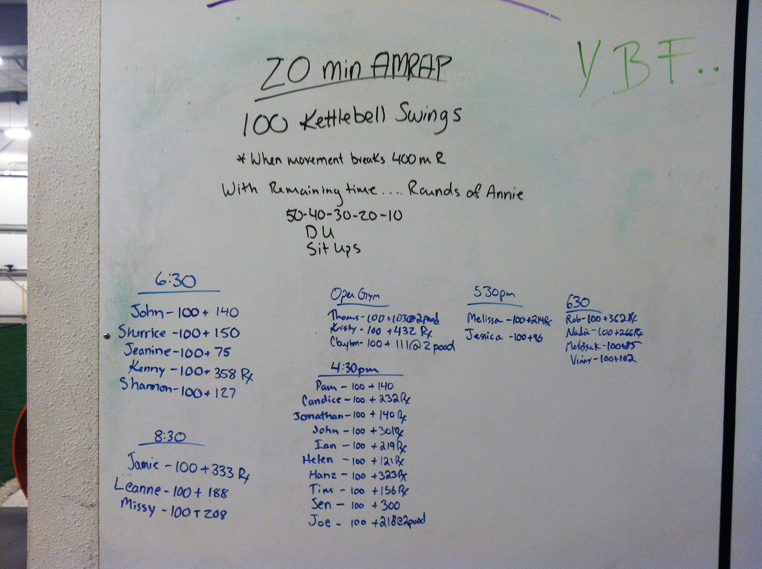 *Every time athlete breaks motion they must run 400m. Once the athlete finishes all kettle bell swings, additional reps are obtained by completing rounds/reps of “Annie”: