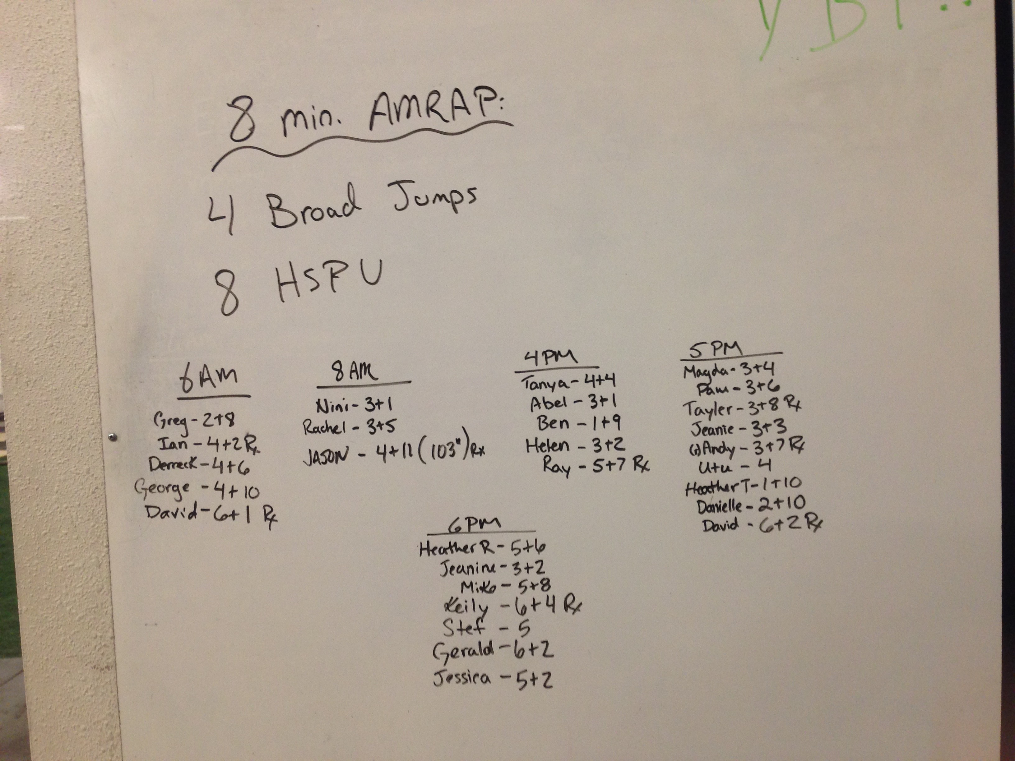 January 28, 2015 WOD Posted onJanuary 27, 2015January 28, 2015AuthorClaytonLeave a comment 8 Minute AMRAP: 4 Broad jumps 8 Handstand push-ups *Test broad jump distance prior to WOD and mark off your max distance. You must achieve this distance during the workout for the rep to count.