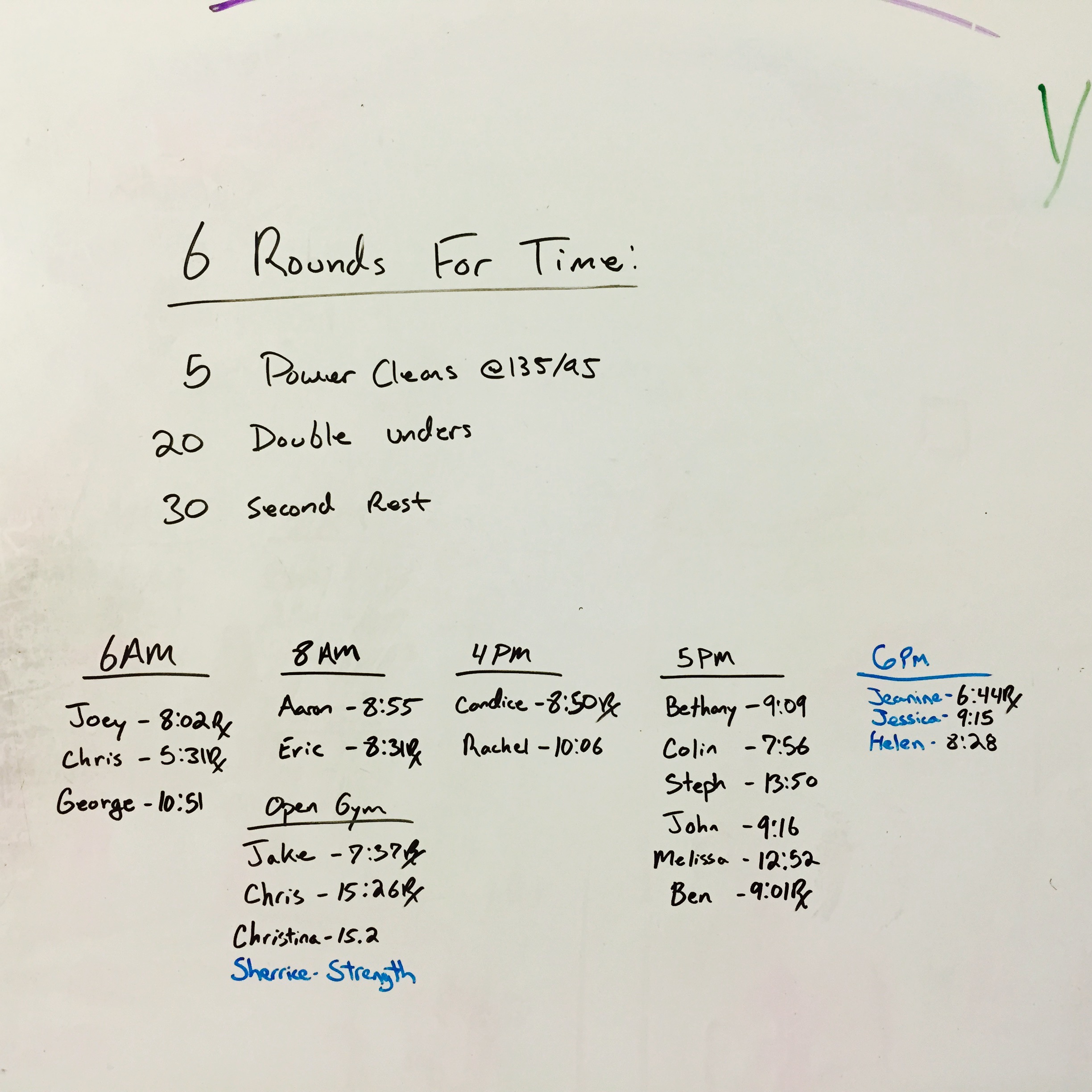 March 6, 2015 WOD Posted onMarch 5, 2015March 6, 2015AuthorClaytonLeave a comment 6 Rounds for Time: 5 Power clean @135/95 20 Double unders 30 Second rest