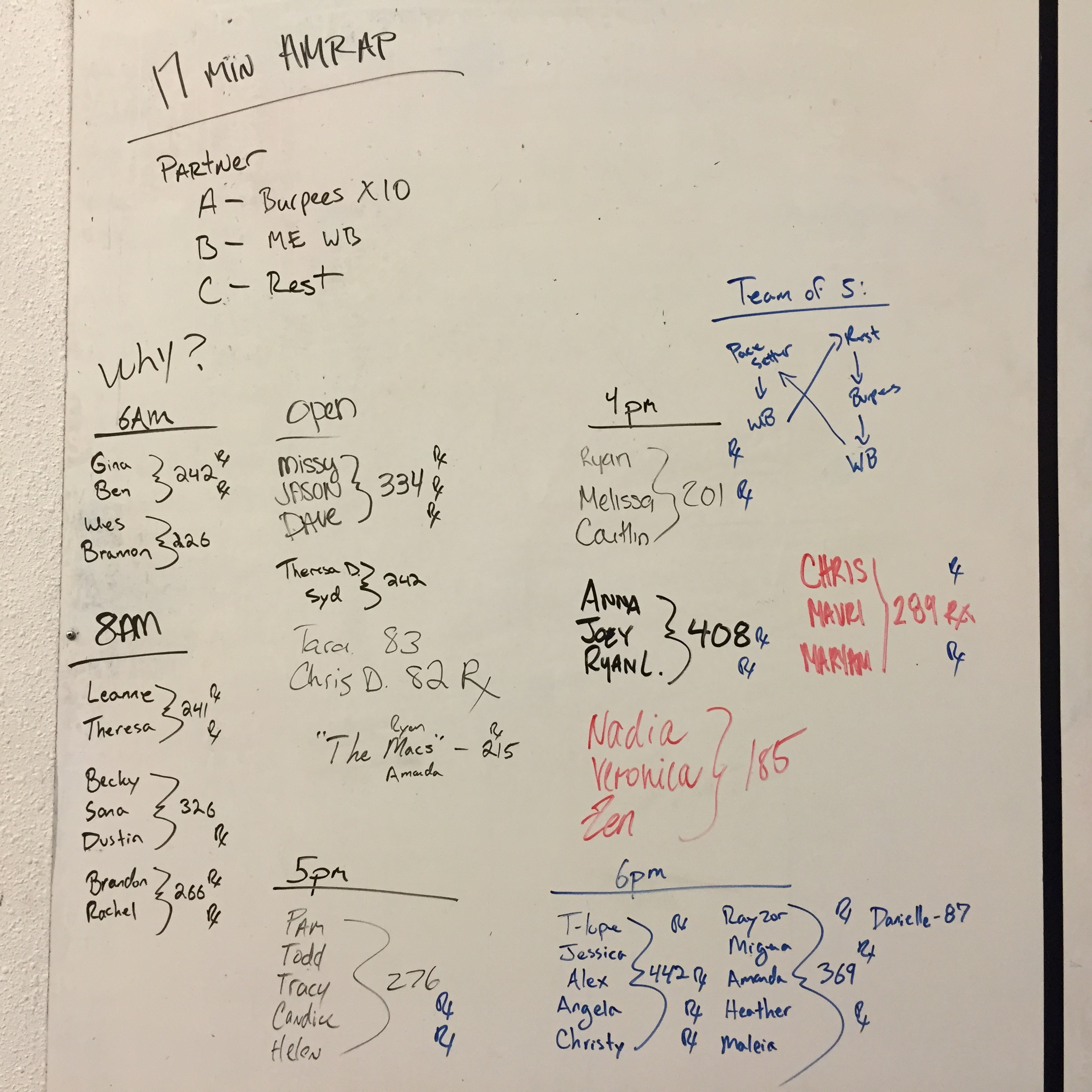 August 17, 2015 WOD Posted onAugust 17, 2015AuthorClaytonLeave a comment 17 Minute AMRAP: (Teams of 3) Partner A: 10 Burpees Partner B: Max Rep Wallballs 20/14lb, 10 ft target Partner C: Rest Score is total number of Wallballs