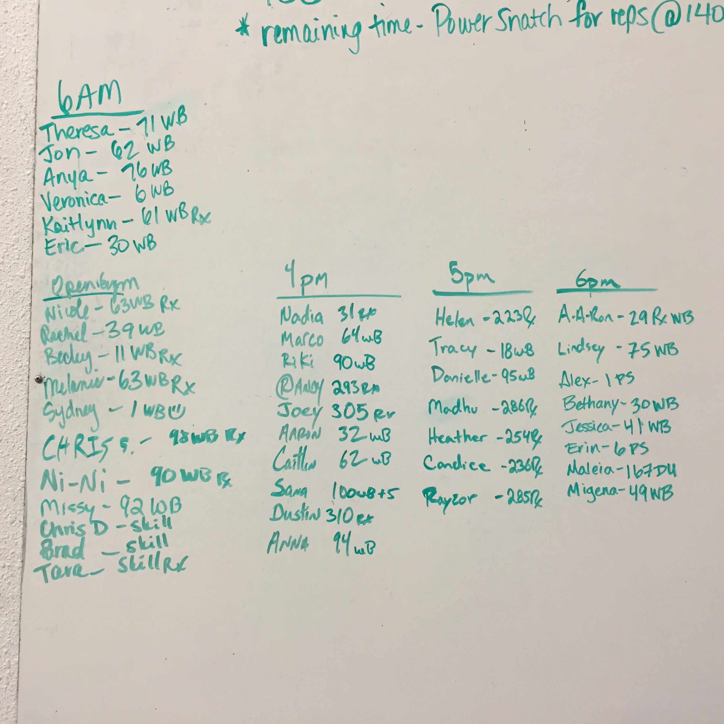 *with remaining time- Power Snatch for reps 140/100