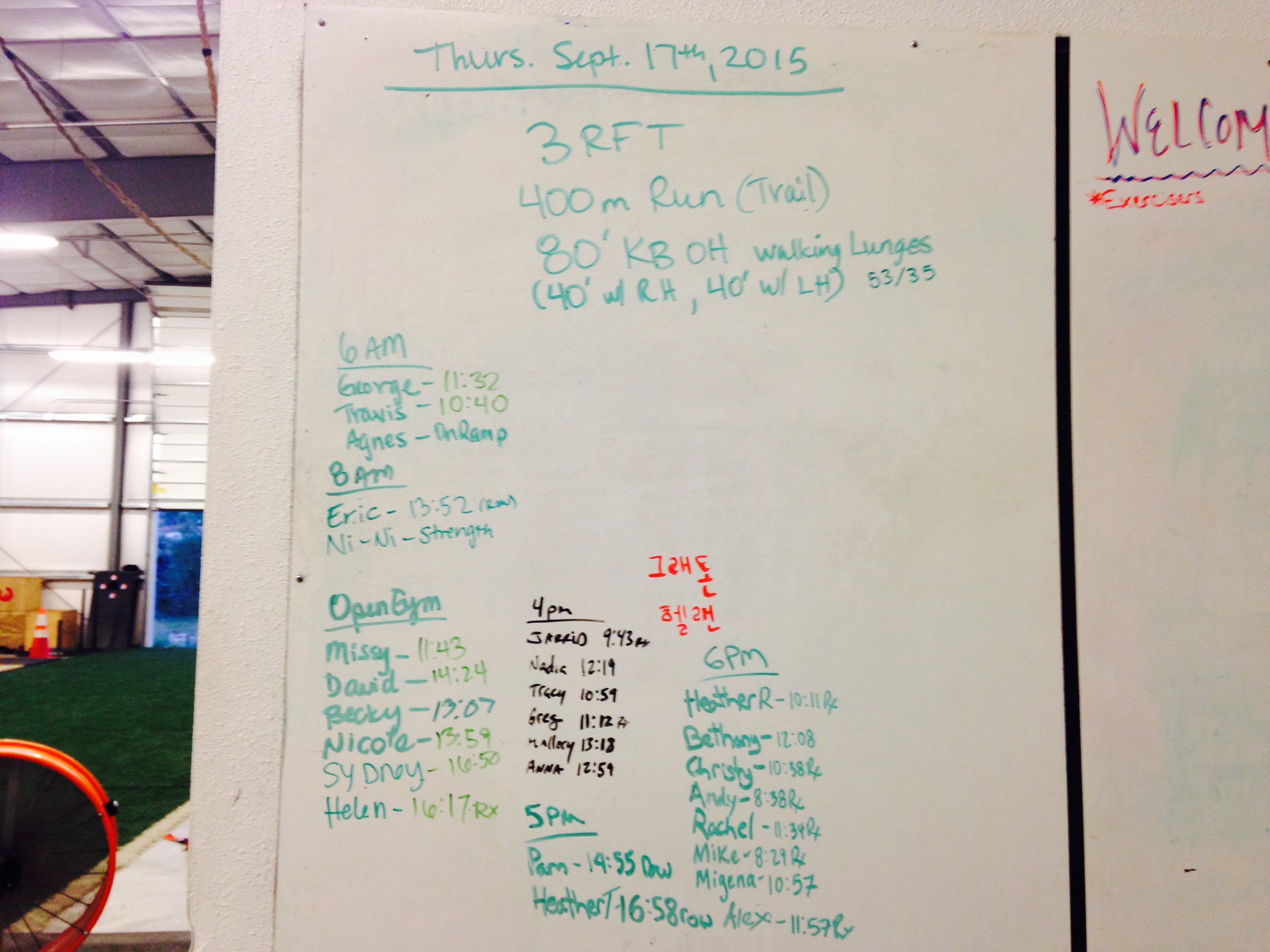 September 17, 2015 WOD Posted onSeptember 17, 2015AuthorClaytonLeave a comment 3 Rounds for Time: 400m. run (trail) 80′ Kettle bell OH walking lunge (40′ on right/ 40′ on left)