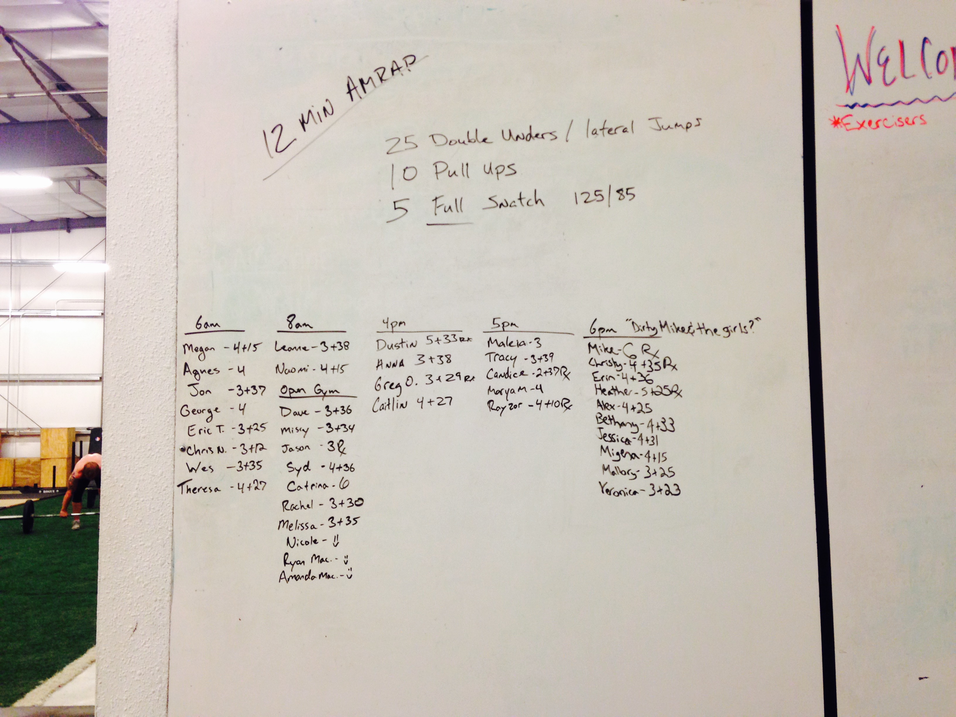 September 21, 2015 WOD Posted onSeptember 21, 2015AuthorClaytonLeave a comment 12 Minute AMRAP: 25 Double Unders 10 Pull-ups 5 Full snatch @125/85