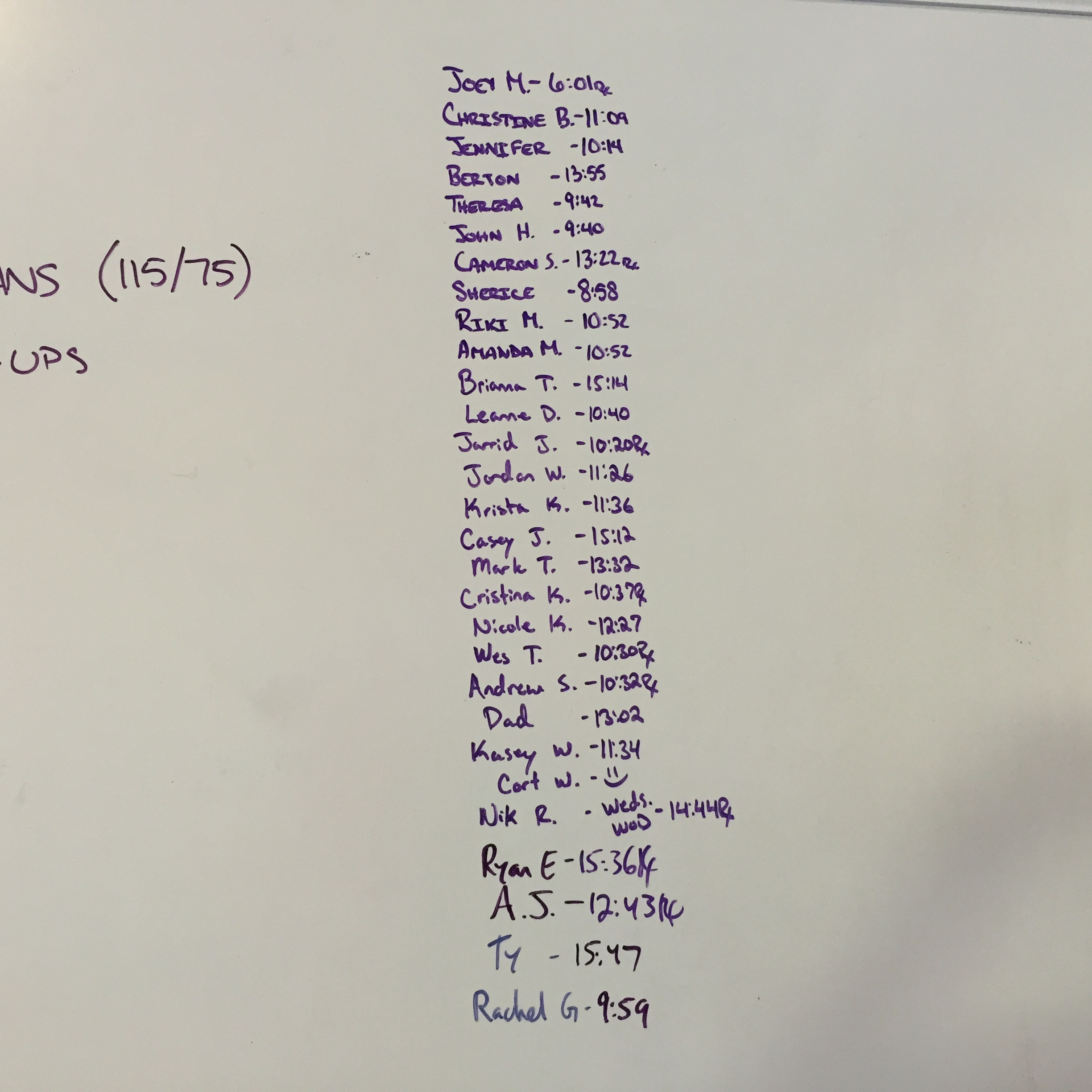 June 17, 2016 WOD Posted onJune 19, 2016AuthorClaytonLeave a comment For Time: 21-15-9 Hang Squat Clean @115/75 Chest to bar pull-ups