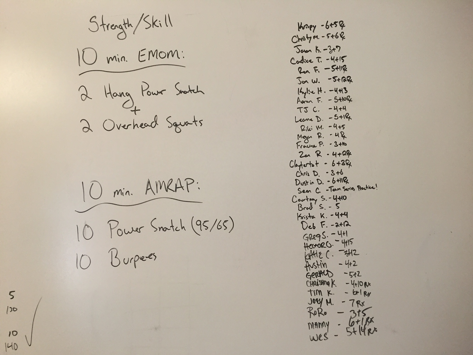 September 8, 2016 WOD Posted onSeptember 8, 2016September 11, 2016AuthorClaytonLeave a comment Strength/Skill: 10 Min. EMOM 2 Hang Power Snatch + 2 Overhead Squats 10 Minute AMRAP: 10 Power snatches @95/65-lb. 10 Burpees