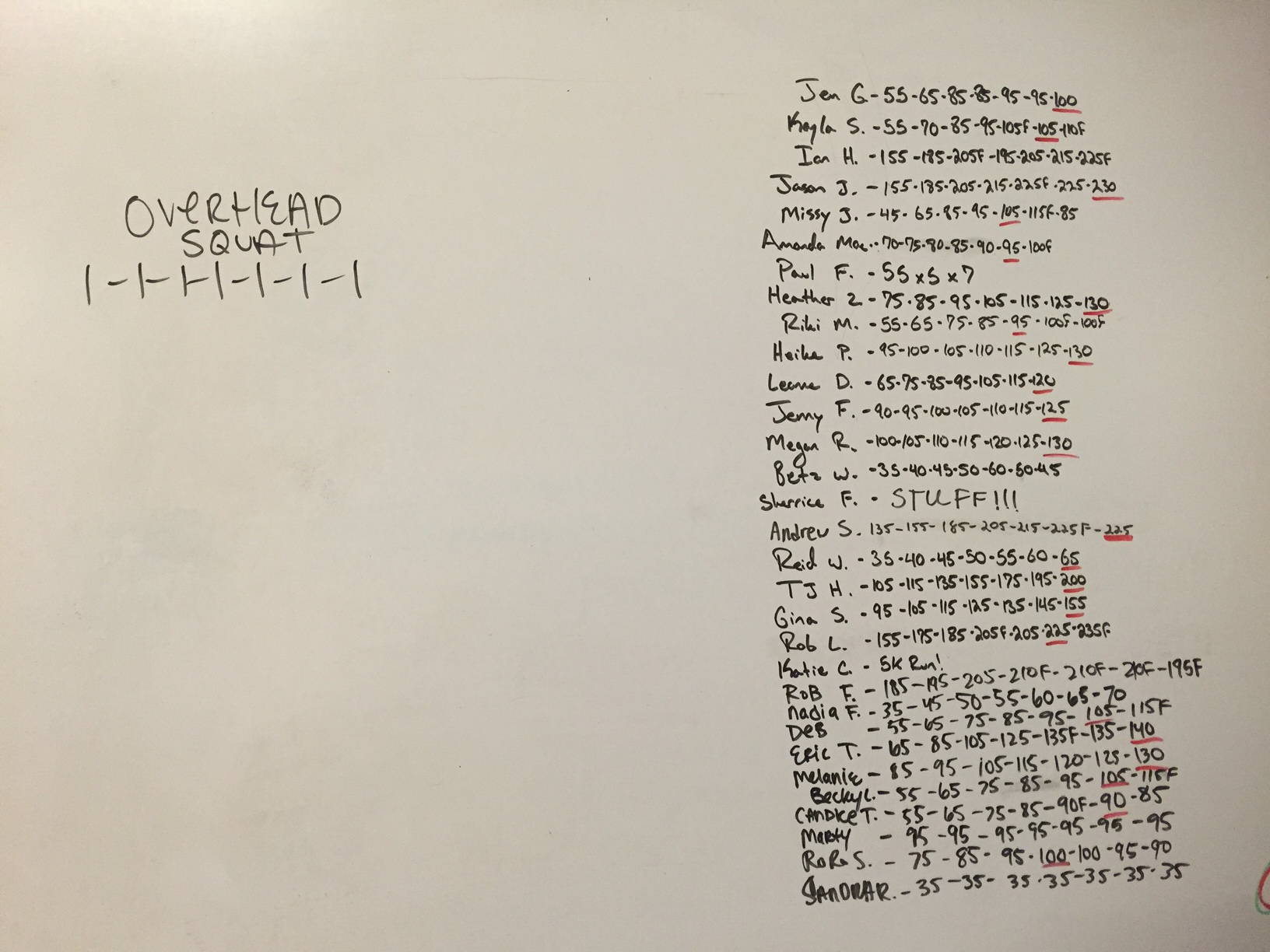 December 1, 2016 WOD Posted onDecember 1, 2016December 2, 2016AuthorClaytonLeave a comment Overhead Squat 1-1-1-1-1-1-1