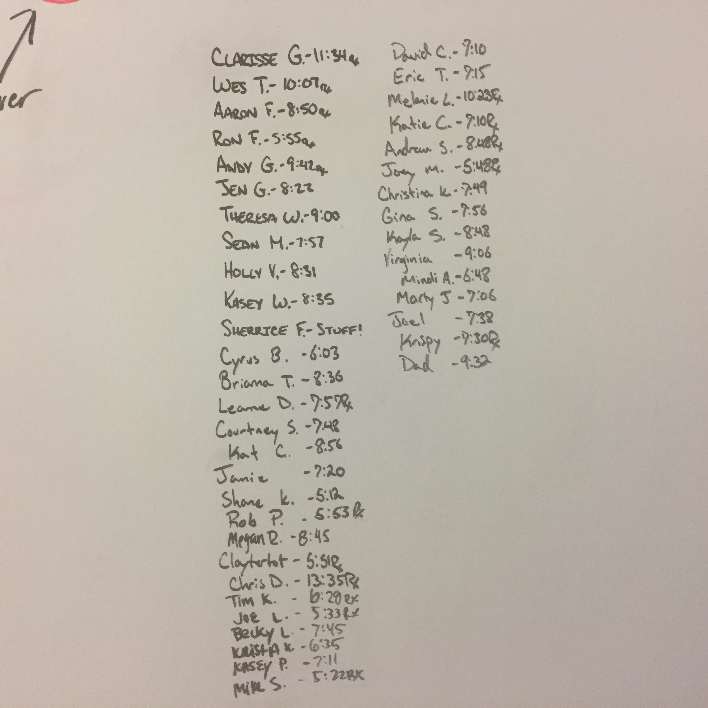 January 4, 2017 WOD Posted onJanuary 4, 2017January 5, 2017AuthorClaytonLeave a comment For time: 40 wall-ball shots, 20/14-lb. ball 150 Double unders 40 wall-ball shots, 20/14-lb. ball