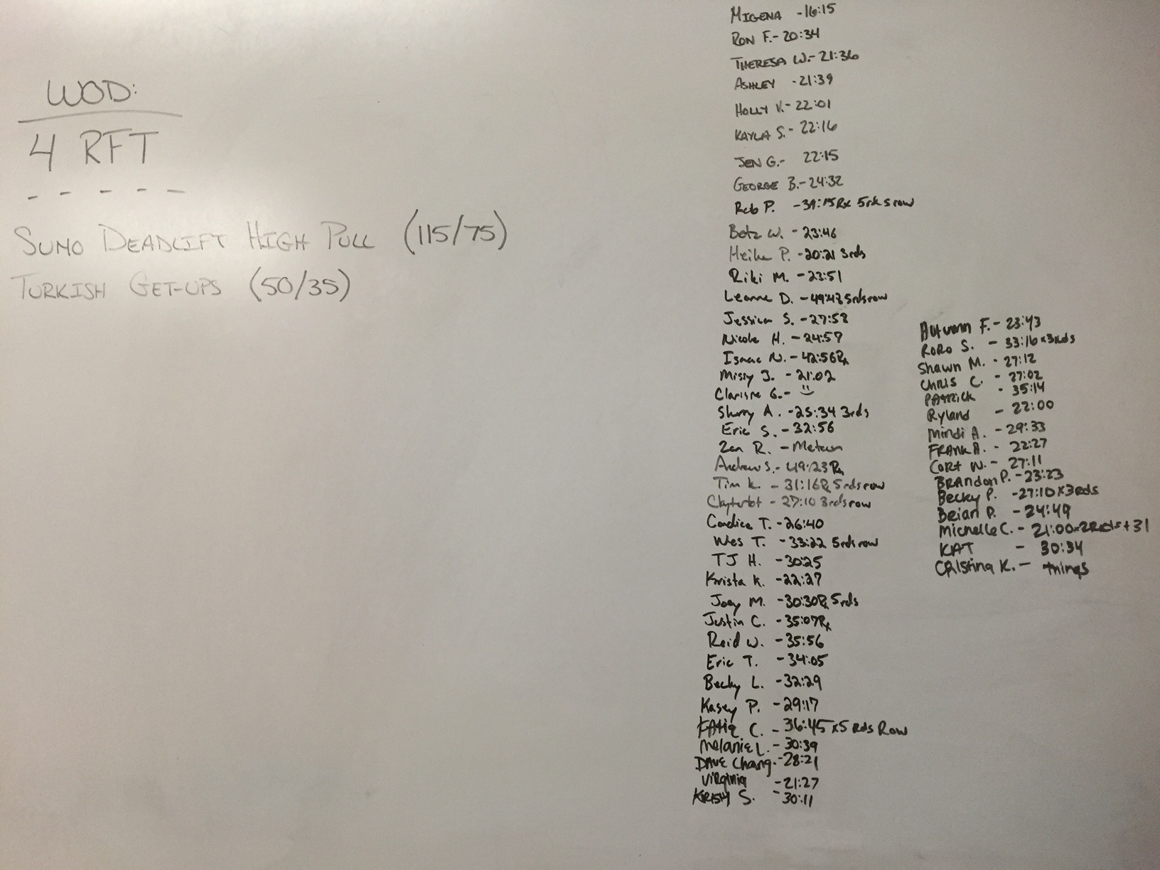 Max sumo deadlift high pull @115/75 in 60 seconds