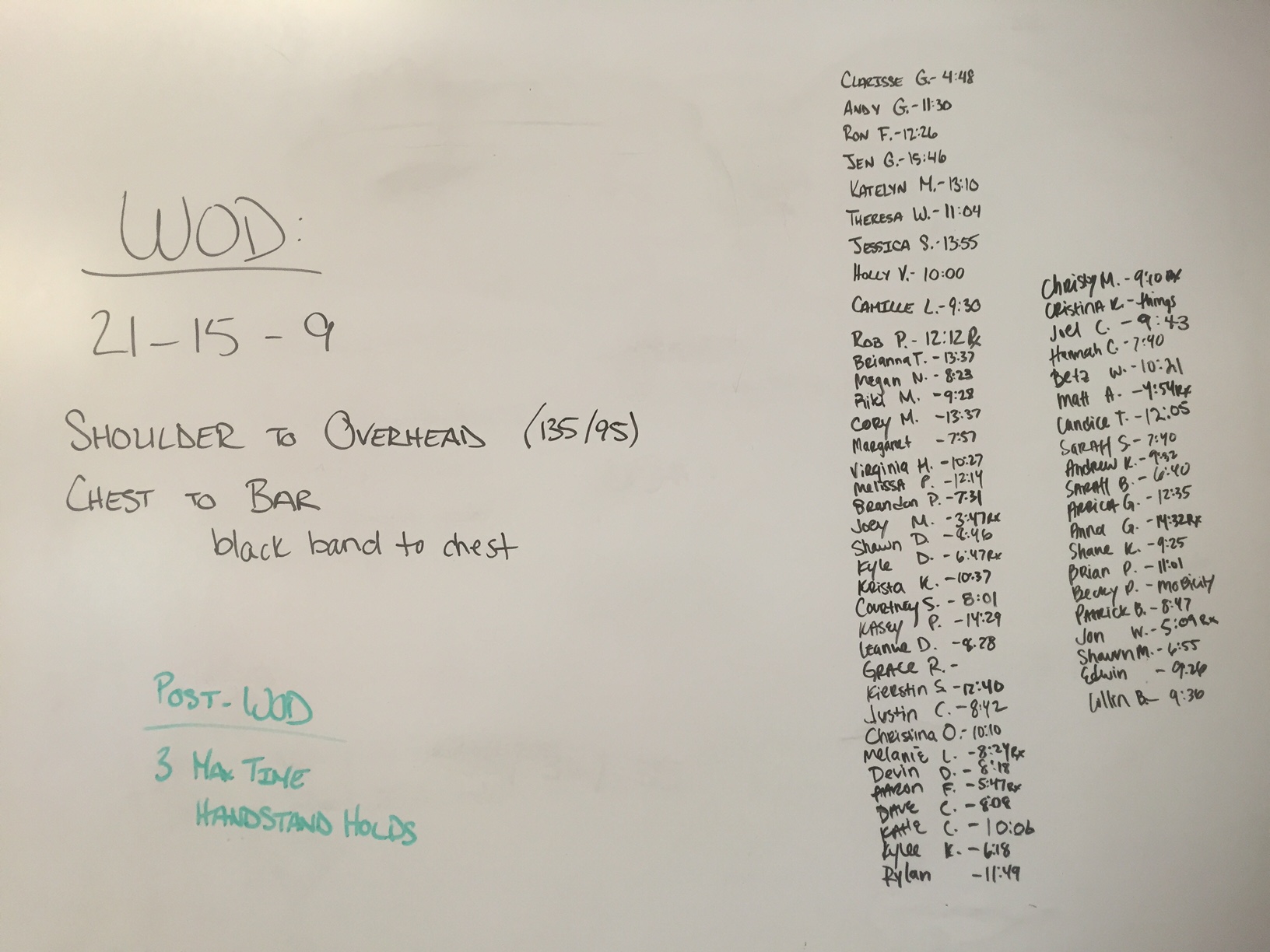 May 15, 2017 WOD Posted onMay 19, 2017AuthorClaytonLeave a comment AGOQ Workout 3 21-15-9 reps for time of: Shoulder-to-overheads, 135/95 lb. Chest-to-bar pull-ups