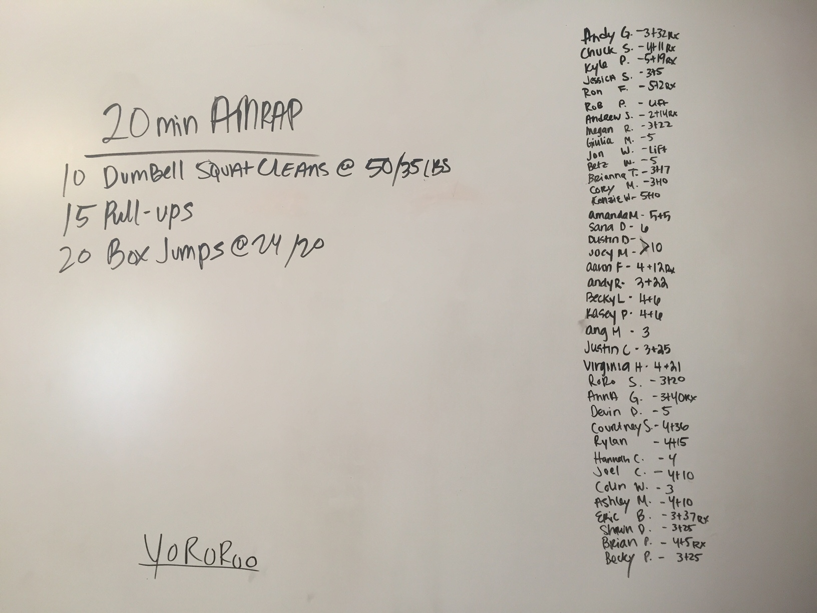May 19, 2017 WOD Posted onMay 19, 2017May 20, 2017AuthorClaytonLeave a comment Complete as many rounds as possible in 20 minutes of: 50/35-lb. dumbbell squat cleans, 10 reps 15 pull-ups 20 box jumps @24″/20″