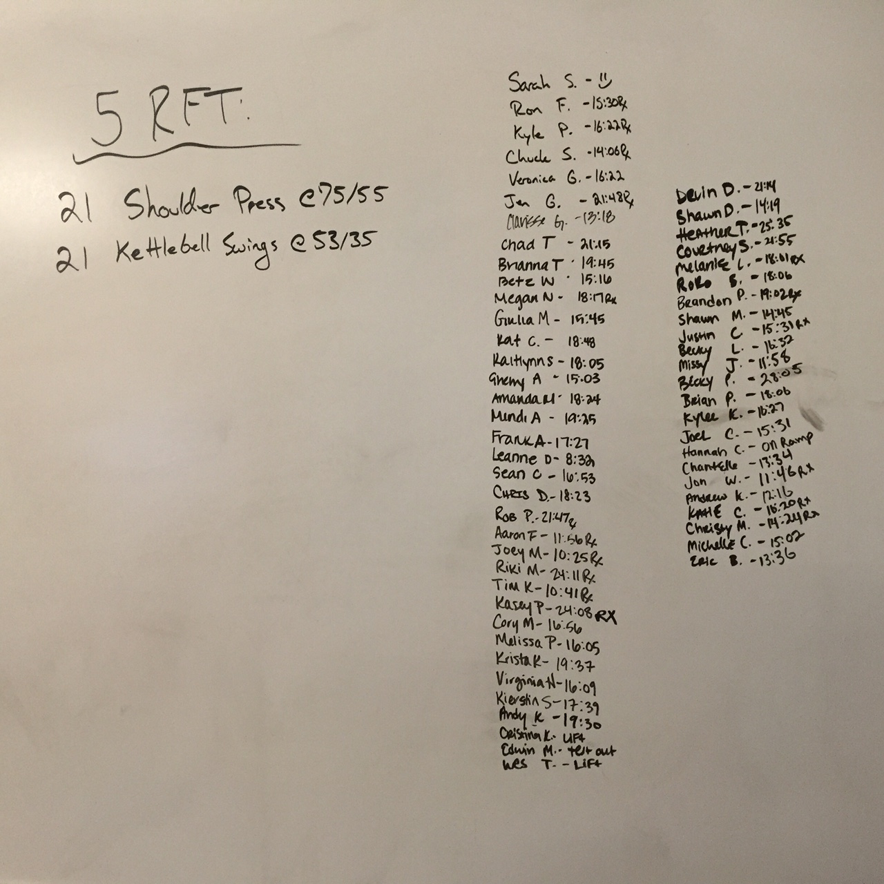 May 22, 2017 WOD Posted onMay 22, 2017May 23, 2017AuthorClaytonLeave a comment 5 rounds for time of: 75/55-lb. shoulder presses, 21 reps 21 Kettlebell swings @53/35-lb.